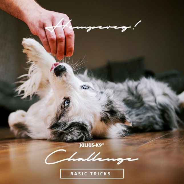 A hempergés már önmagában is egy nagyon cuki trükk, ugyanakkor ebből felépítve később olyan további vicces feladatokat taníthatunk kedvencünknek, mint pl. a lelövés vagy a betakarózás.